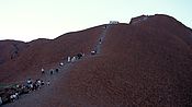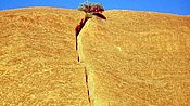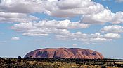 Obwohl man den Giganten schon oft auf Bildern gesehen hatte, war das, was sich da vor mir auftat, ein ganz unbeschreiblicher Eindruck. Sonnenstrahlen und abwechselnde Schatten tauchten den Fels in eine stets neue und interessantere Farbe. Man hätte Stunden davor verweilen können, wäre es im roten Herzen Australiens nicht so heiß gewesen. 40°C und mehr, dazu die himmlische Stille, die nur ab und zu von einem geheimnisvollen Laut aus dem Outback unterbrochen wird...