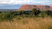 Vor ca. 120 Millionen Jahren entstanden, ist dieser heilige Berg nur die höchste Spitze eines im Sand versunkenen Gebirges. Die seltsamen Felsformationen sind zernarbt durch Kämpfe, welche die Urahnen am Beginn der Traumzeit austrugen.
