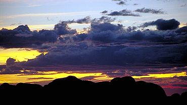 Unweit vom Uluru befinden sich die Bergkuppen der Kata Tjuta (Viele Köpfe). Hier beim "sunset" (Sonnenuntergang) fotografiert.