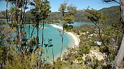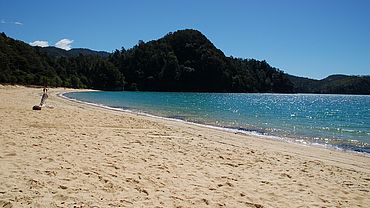 Bei herrlichem Sonnenschein fahren wir zum Abel Tasman Nationalpark. Wir machen eine Bootsfahrt entlang der traumhaften Küste und werden an einem Strand abgesetzt. Von hier aus wandern wir auf dem Abel Tasman Track entlang der Küste durch ursprünglichen Wald mit vielen Baumfarnen ca. 4 Stunden zu einer anderen malerischen Bucht, wo uns das Boot wieder abholt. Hier gibt es auch Badegelegenheiten, aber ich ziehe es vor, nur meine Füße im Wasser zu kühlen. Das Abendessen in der urigen „Schmuggler-Kneipe“ haben wir uns redlich verdient.