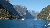 Heute steht der Milford Sound im Fjordland an der Westküste auf dem Programm. Dirk warnt uns vor, dass das Wetter dort meistens regnerisch ist. Nur damit wir nicht enttäuscht sind, falls es nach Sonnenschein in Te Anau dann schlechter wird. Aber wir haben Glück! Schon die Milford Road zum Fjord hin ist sehr schön mit vielen interessanten Aussichtspunkten. Am späten Vormittag erreichen wir den Milford Sound bei Sonnenschein und tiefblauem Himmel. Am Rande des Fjordes kann man einen kleinen Rundweg gehen mit herrlichem Ausblick auf den Mitre Peak, den höchsten Berg direkt am Fjord. Am Nachmittag machen wir eine Bootsfahrt durch den Milford Sound bis zum offenen Meer hin. Auf dem Sonnendeck, welches wir fast für uns allein haben, genießen wir die wunderbare Aussicht auf steil abfallende hohe Felsen und Berge, Wasserfälle mit und ohne Regenbogen und auf einem Felsen liegende und im Wasser spielende Robben. Zurück geht es wieder nach Te Anau, wo wir am späten Nachmittag noch Gelegenheit haben, die Souvenirshops zu durchstreifen. Auch das mache ich gerne und lasse ungern einen aus.
