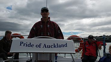 Heute steht eine organisierte Stadtrundfahrt auf dem Programm mit Fahrt über die Hafenbrücke, wo wir etwas über die „Nippon Clipons“ erfahren. In Kelly Tarlton’s Antarctic Encounter and Underwater World sehen wir Königspinguine und erleben eine bunte Unterwasserwelt. Auf dem Mount Eden stehen wir kurz im Regen - Sonne und Regenschauer wechseln sich nämlich ab. Ein Höhepunkt ist die Fahrt auf einer Segelyacht durch den großen Naturhafen mit Blick auf die imposante Skyline von Auckland. Jeder kann sich auch selbst einmal am Steuerrad versuchen. Gegen Ende geraten wir bei starkem Wind noch in eine ganz schöne Schieflage.