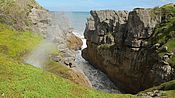Am frühen Morgen machen wir eine Wanderung um den Lake Matheson, in dem sich die Bergkette mit dem Mount Cook wunderbar spiegelt. Am Vormittag erreichen wir Hokitika, wo Jade verarbeitet wird. Das Angebot an Kunsthandwerk ist groß. Nächstes Ziel sind die Pancake Rocks an der Küste. Das sind interessante Felsformationen, die teilweise aussehen wie aufgeschichtete Pfannkuchen. Der Besucherweg ist sehr schön angelegt und hier können wir auch die heimischen Nikau-Palmen aus nächster Nähe betrachten. Durch das bergige Landesinnere geht es auf einer kurvenreichen Strecke nach Nelson, wo wir 2 Nächte bleiben.