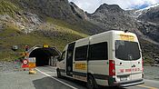 Eine lange Fahrtstrecke steht heute an. Am Morgen machen wir einen Strandspaziergang und besichtigen die Moeraki Boulders, große Steinkugeln, die einfach so im Sand liegen. Anschließend fahren wir zu einer Beobachtungsstelle für Gelbaugenpinguine und Robben. Weiter geht es nach Dunedin, einer schottisch geprägten größeren Stadt. Hier erklimmen wir zu Fuß die steilste in einem Ort liegende Straße der Welt. Doch, man konnte es in den Beinen merken, ganz schön steil! Dafür wird man oben mit einer schönen Aussicht belohnt. Die Mittagspause verbringen wir im Stadtzentrum von Dunedin. Besonders beeindruckend ist der historische Bahnhof. Weiter geht es ins Landesinnere Richtung Westen nach Te Anau, dem Tor zum Fjordland. Te Anau liegt am gleichnamigen großen See, auf dessen gegenüberliegender Seite eine besondere Höhle optional besichtigt werden kann. Das tun wir dann auch am späten Abend. Nach Bootsfahrt über den See erreicht man die Höhle. Zunächst geht es zu Fuß in die Höhle und dann fährt man mit einem kleinen Boot bei völliger Dunkelheit und absoluter Stille auf einem unterirdischen See. Und über einem leuchten tausende helle Glühwürmchen. In Neuseeland sind das Insektenlarven, die durch ihr Licht andere kleine Insekten anziehen, um den Larven als Nahrung zu dienen. Nachdem wir die Höhle wieder verlassen haben, leuchtet der Sternenhimmel über uns und natürlich das Kreuz des Südens. Leider war in der Höhle das Fotografieren nicht möglich, um die Glühwürmchen nicht zu stören.