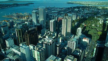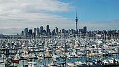 Am Morgen haben wir die Wahl zwischen Maori-Kultur, einheimischer Tierwelt oder einem Ausflug zum Hobbit-Gelände. Ich entscheide mich für den Rainbow Springs Nature Park, in den uns Dirk begleitet. Hier sehen wir u. a. die Kea-Papageien, die Tuatara-Echse und die Kiwi-Vögel. Die Führung durch die Kiwi-Aufzuchtstation ist lehrreich, und wenn es nicht verboten gewesen wäre, hätte man die Vögel streicheln können. Wegen der für die Kiwis notwendigen Fast-Dunkelheit kann ich jedoch nur ein Foto im Besucherzentrum abfotografieren. Weiter geht es nach Auckland, der mit 1,5 Millionen Einwohnern größten Stadt Neuseelands, auch „City of Sails“ - „Stadt der Segel“ - genannt. Unser Hotel liegt mittendrin. Am Nachmittag bleibt noch Zeit für einen Stadtbummel. Ich fahre als erstes auf den markanten Sky Tower, dessen Aussichtsplattform eine herrliche Rundumsicht bietet.